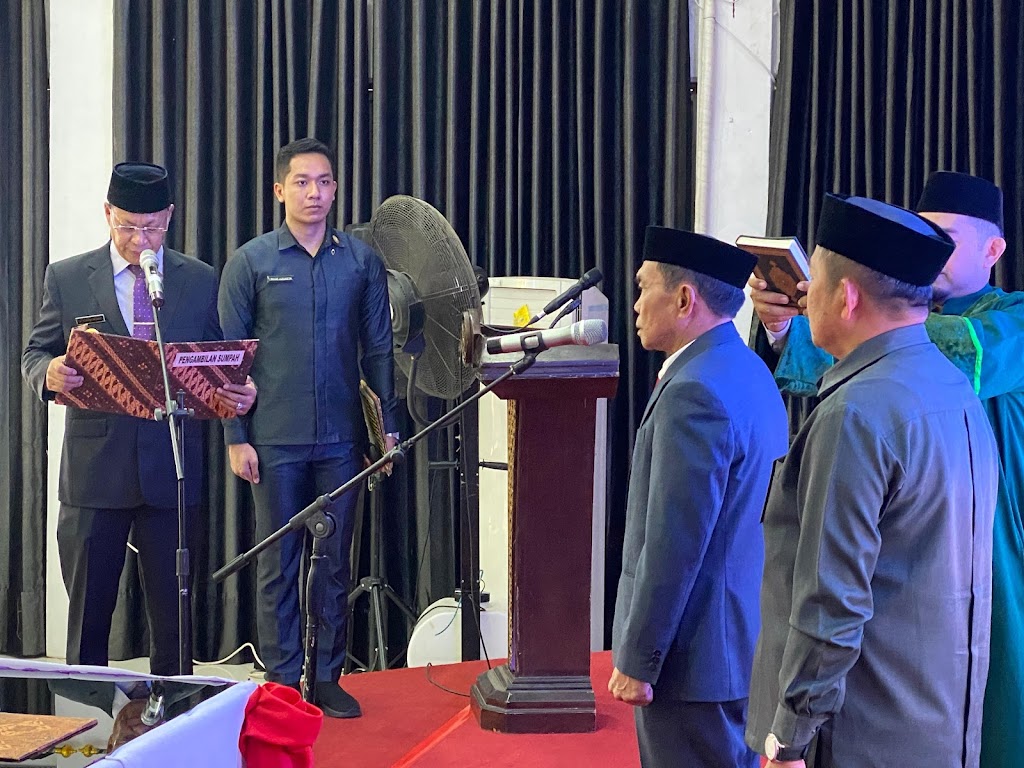 Pelantikan dihadiri Pj Bupati, unsur forkopimda, pimpinan sementara DPRD Enrekang, pimpinan OPD, serta puluhan pengawas dan kepala sekolah.