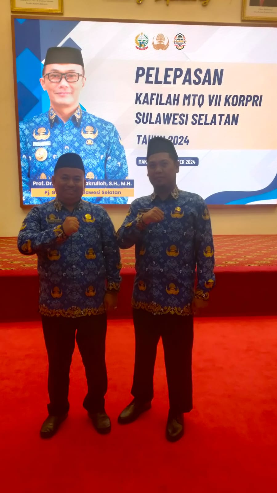 Keduanya dilepas oleh Penjabat Gubernur Sulsel, Prof Zudan Arif Fakrulloh, di Aula Tudang Sipulung, Rumah Jabatan Gubernur Sulsel, Kamis (31/10/2024). Pelepasan ini menandai kesiapan kontingen Sulsel untuk bersaing di ajang bergengsi yang akan berlangsung di Palangkaraya, Kalimantan Tengah, 3-10 November 2024.