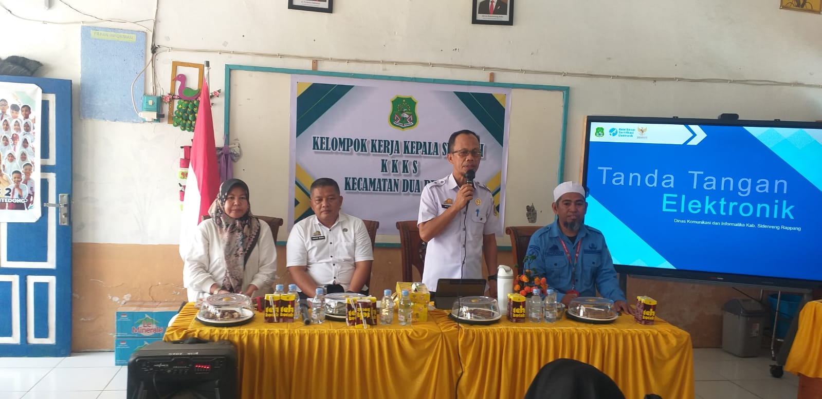 Bertempat di UPT SDN 1 Tanrutedong, Rabu (8/4/2026), Dinas Kominfo bersama Kelompok Kerja Kepala Sekolah (K3S) Kecamatan Dua Pitue menggelar sosialisasi dan aktivasi Tanda Tangan Elektronik (TTE) bagi seluruh Kepala Sekolah Dasar (SD) di wilayah tersebut.